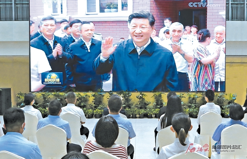7月15日,乌鲁木齐国际陆港区工作人员收看习近平总书记在新疆考察的新闻报道。天山网-新疆日报记者蔡增乐摄