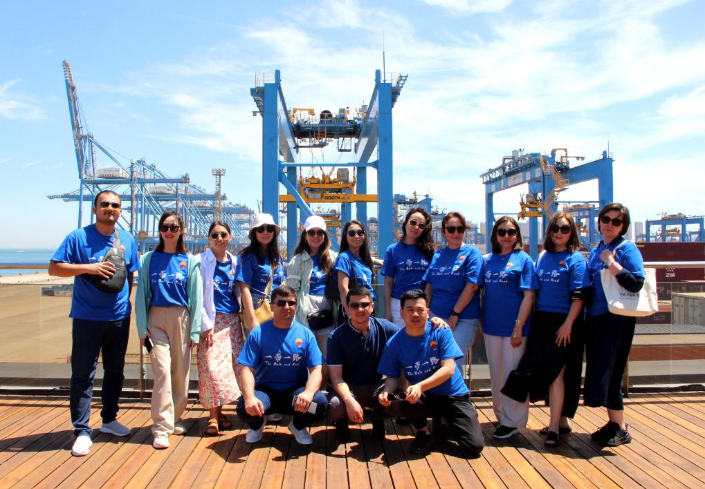 27 июня 2024 года, участники учебного курса по повышению квалификации управленческого персонала посещают автоматизированный контейнерный терминал в порту Циндао /пров. Шаньдун, Восточный Китай/. /Фото: Синьхуа/