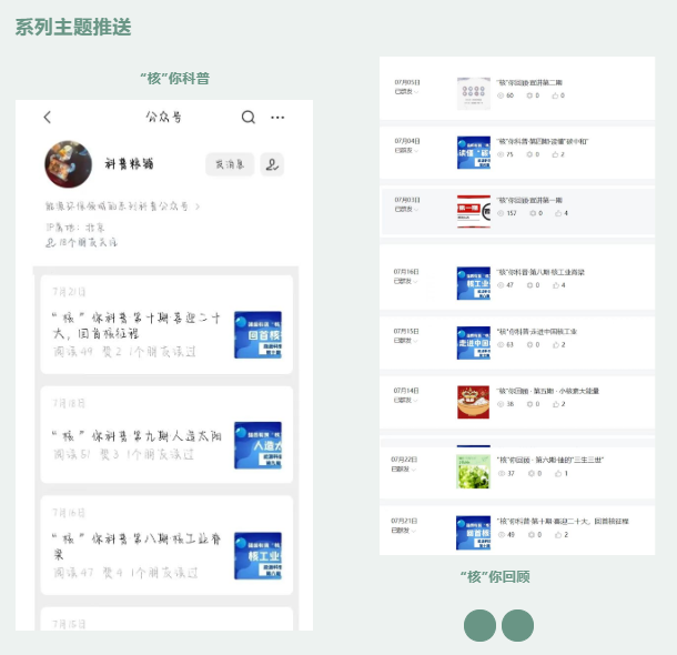 在严格遵守疫情防控要求的前提下,团队成员为了保障宣讲质量,精心设计,计划同时在线上和线下开展宣讲。团队建立“科普粮铺”微信公众号,将核能科普知识在微信公众号进行发布,共发布科普类推文12篇。宣讲团成员一人认领一个宣讲主题,结合当地资源进行线上线下宣讲,尽最大可能提升宣讲覆盖面。