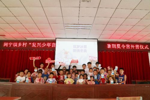 7月13日下午,实践团前往闽宁镇乡村“复兴少年宫”举行了开营仪式,团队成员组织开展了“破冰行动”拓展活动,通过“名字接龙”“丢手绢”等游戏,拉近了实践团成员与青少年们的距离。实践团还为当地的孩子们开展了“筑梦冰雪,燃情冬奥”主题教育活动,北京冬奥会延庆赛区志愿者耿睿结合个人亲身经历,为闽宁镇的青少年们讲解了冬奥文化和冰雪运动的相关知识。在活动过程中,实践团通过问答和“你画我猜”的小游戏,为青少年们发放了带有冰墩墩、雪容融等冬奥形象的明信片,鼓励同学们从小事出发,树立起奉献社会、服务社会的崇高责任感。