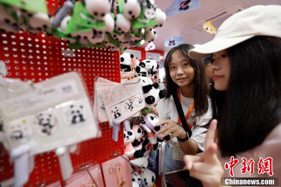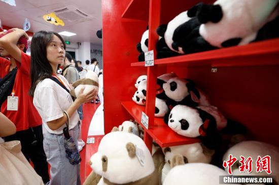 台湾青年在北京动物园选购熊猫纪念品。