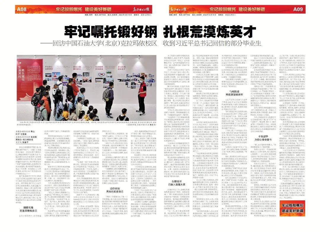 ——回访中国石油大学(北京)克拉玛依校区收到习近平总书记回信的部分毕业生发布时间:2022-08-22 | 来源:克拉玛依日报 | 浏览量: