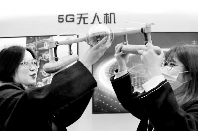2020年12月10日,观众在苏州电博会上参观5G无人机。王健康摄/光明图片