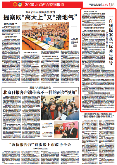 为2022年北京冬奥会的医疗保障支招,帮轨道交通站点地下空间一体化利用出谋划策,推动多部门畅通企业退出机制……2019年,北京市政协委员纷纷发挥自身优势,为首都各项事业发展建言献策,提出提案1327件,立案1220件。其中,100件聚焦医疗、交通、古都风貌保护等热点的提案从中脱颖而出,获得“优秀”称号。