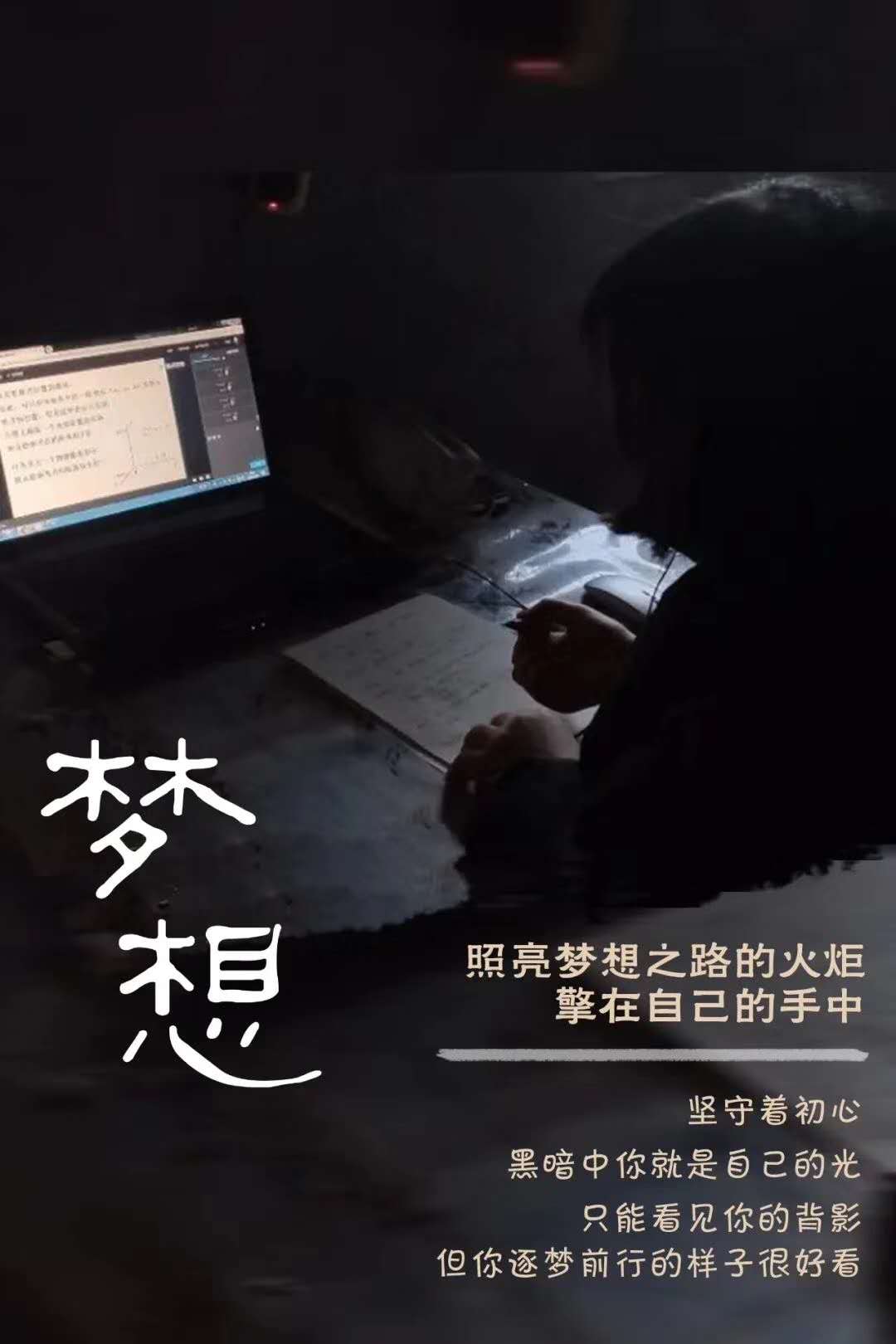 照亮梦想之路的火炬,擎在自己的手中,坚守着初心,黑暗中你就是自己的光,只能看见你的背影,但你逐梦前行的样子很好看。