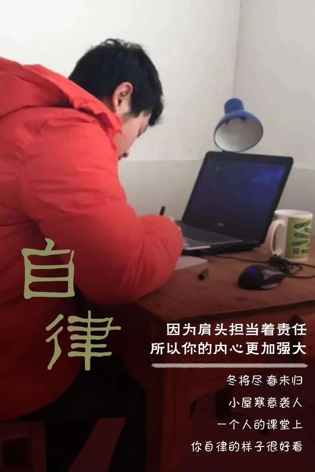 因为肩头担当着责任,所以你的内心更加强大,冬将尽、春未归,小屋寒意袭人,一个人的课堂上,你自律的样子很好看。