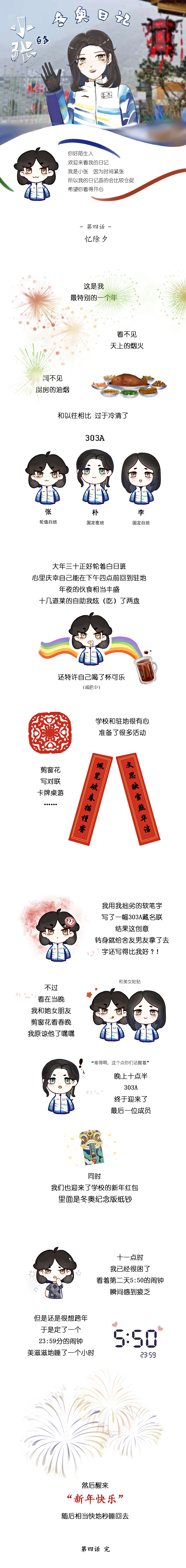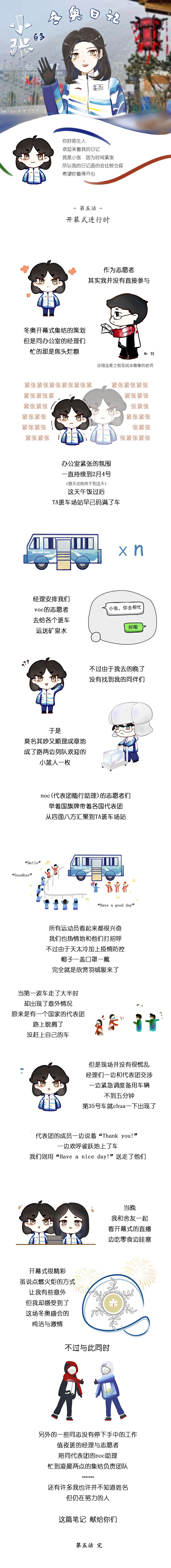 《小张的冬奥与冬残奥日记》说是漫画,其实更像是一篇手帐,记录着我从冬奥预开村到冬残奥志愿服务结束的所见所闻。