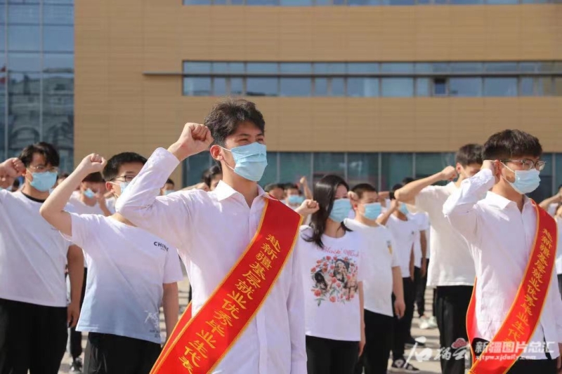 留疆毕业生出征仪式现场 ,毕业生代表宣誓。 通讯员 魏静怡摄