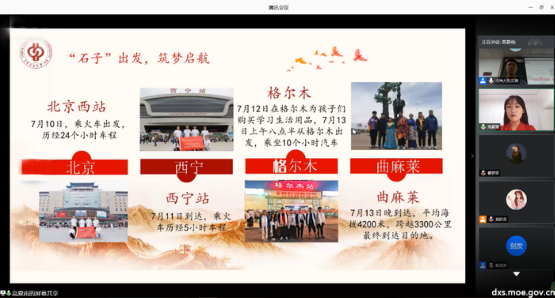 随后,中国石油大学(北京)石子筑梦实践团成员、物探18-2团支部的高夏雨同学分享了2019年赴海拔4200多米的青海玉树藏族自治州曲麻莱县的支教经历。