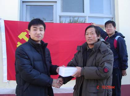 向豹房村支部赠送十七大《学习文选》