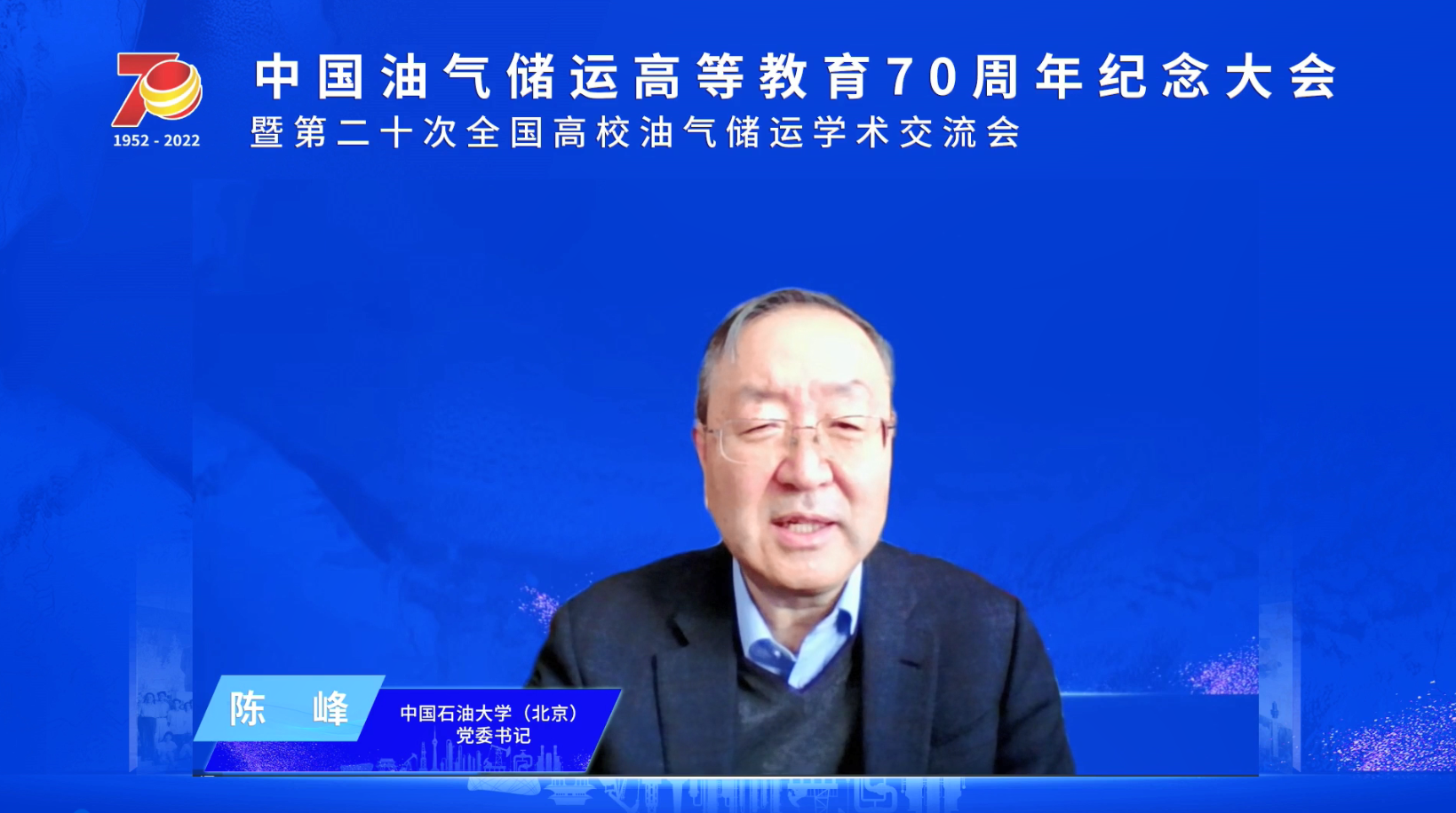 陈峰在致辞中向70年来为我国油气储运高等教育创立和发展立下不朽功勋的教育工作者表示崇高敬意,向长期以来关心和支持油气储运高等教育发展的企业领导和广大工程技术人员表示衷心感谢,向所有参会人员表示欢迎。他回顾了油气储运高等教育办学70年的发展历程,表示油气储运学科在自身大发展的同时为我国石油天然气、管道运输、油气销售、城市燃气、国防交通等部门培养了大批科技人才和企业管理人才。他指出,油气储运工程作为行业特色鲜明的综合应用型学科,自始至终以服务石油工业发展需求为己任,积极投身国家重点工程建设,为国家经济与能源发展做出了重大贡献。他强调当前世界百年未有之大变局正在加速演进,全球能源供需的版图正在深度调整,世界能源多极化供应格局进一步凸显,加快能源低碳转型已经成为世界各国的共识。油气储运工程作为能源主干学科,应面对新时代的发展要求,适应能源革命趋势,焕发出新的活力,加快培养造就油气储运领域的战略人才力量,加快实现能源科技自立自强,更好地服务国家现代能源体系和现代综合交通运输体系的发展,助力能源强国、交通强国,全力做好保障国家能源安全和推动能源绿色发展的高质量答卷。