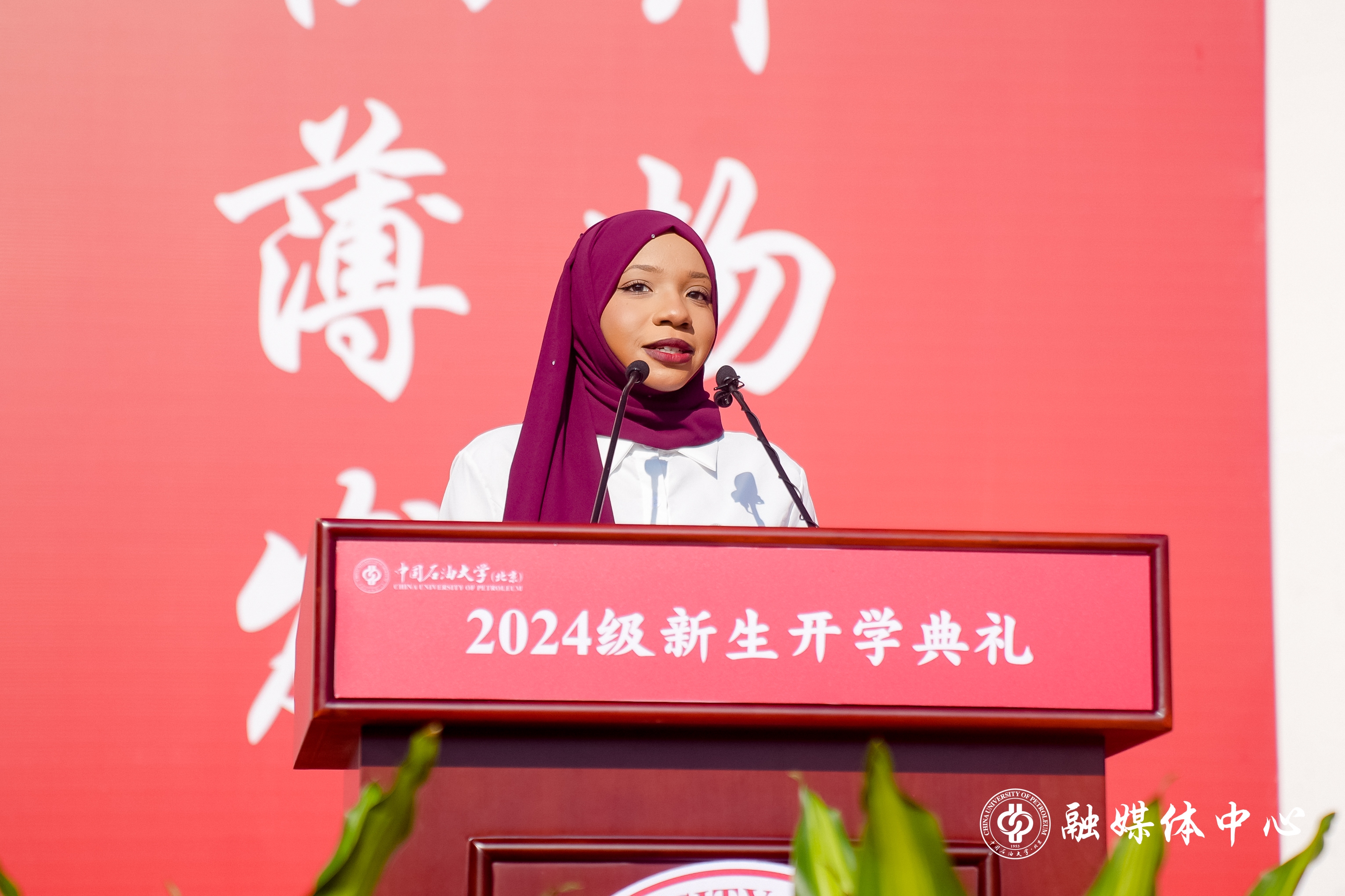 留学生新生代表、国际教育学院2024级硕士生雨拟表达了继续在中石大深造的骄傲与自豪,期待在学校为留学生精心打造的舞台上继续努力,成为一名具有国际视野的学者,为搭建苏丹与中国、非洲与中国间的友谊桥梁作出贡献。
