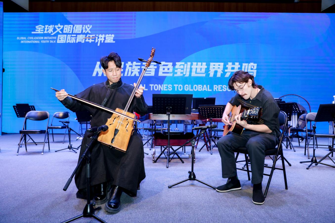 在全球文明倡议国际青年讲堂上,三组中外青年代表围绕文化创新、艺术融合与合作发展等主题进行深度交流。国际青年新年音乐会以“清音溯古·曲觅遗风”“乐韵千秋·文武并呈”“弦歌不辍·致敬山河”为脉络,呈现了中国传统音乐的丰富形态,传达出中华文化的历史底蕴与精神追求。学生在演奏中领略中国传统音乐的深厚魅力,在充满和平与友好的氛围中,感受艺术超越国界的联结力量。