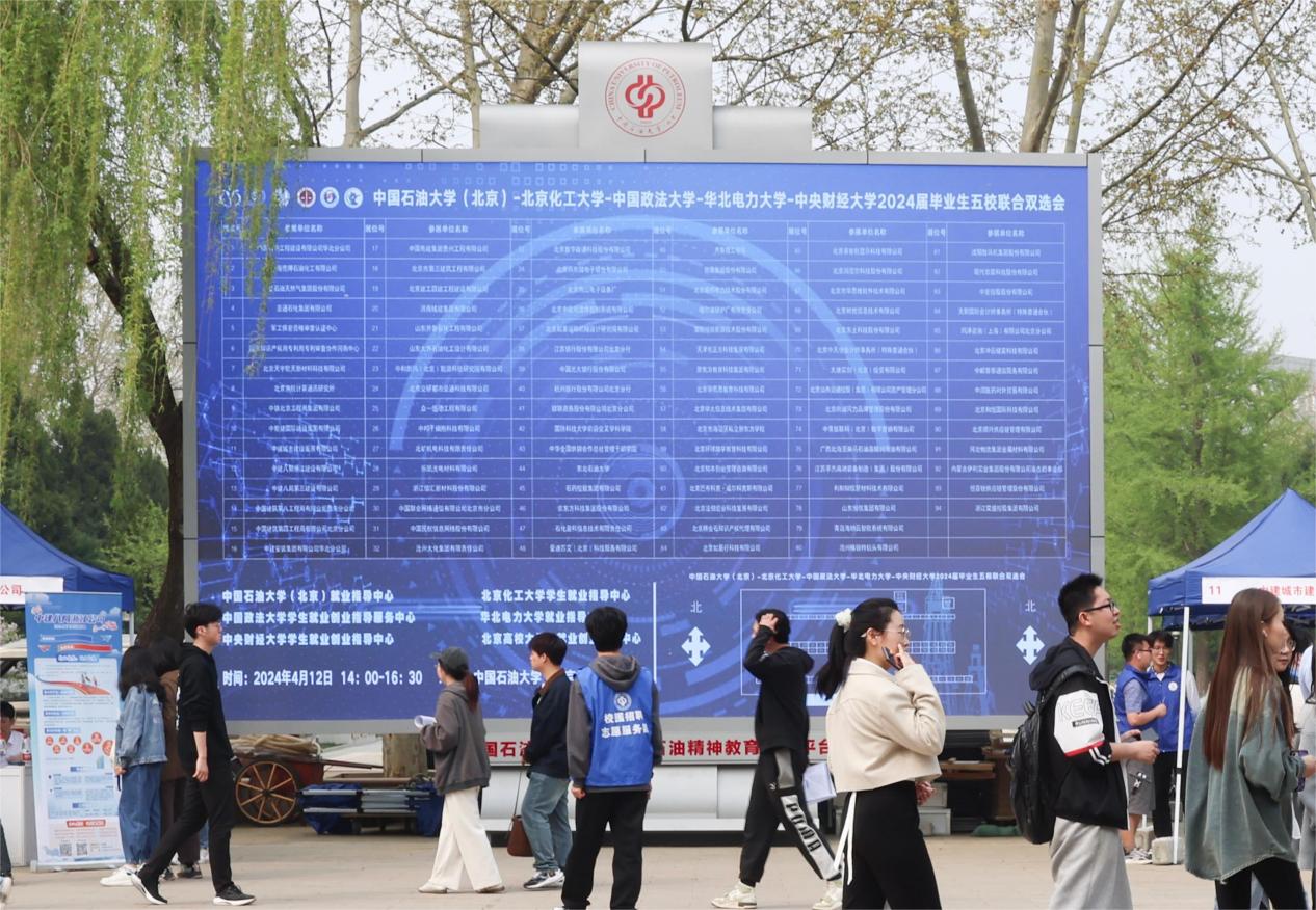 4月12日,中国石油大学(北京)—北京化工大学—中国政法大学—华北电力大学—中央财经大学2024届毕业生五校联合双选会在学校北校园举办。