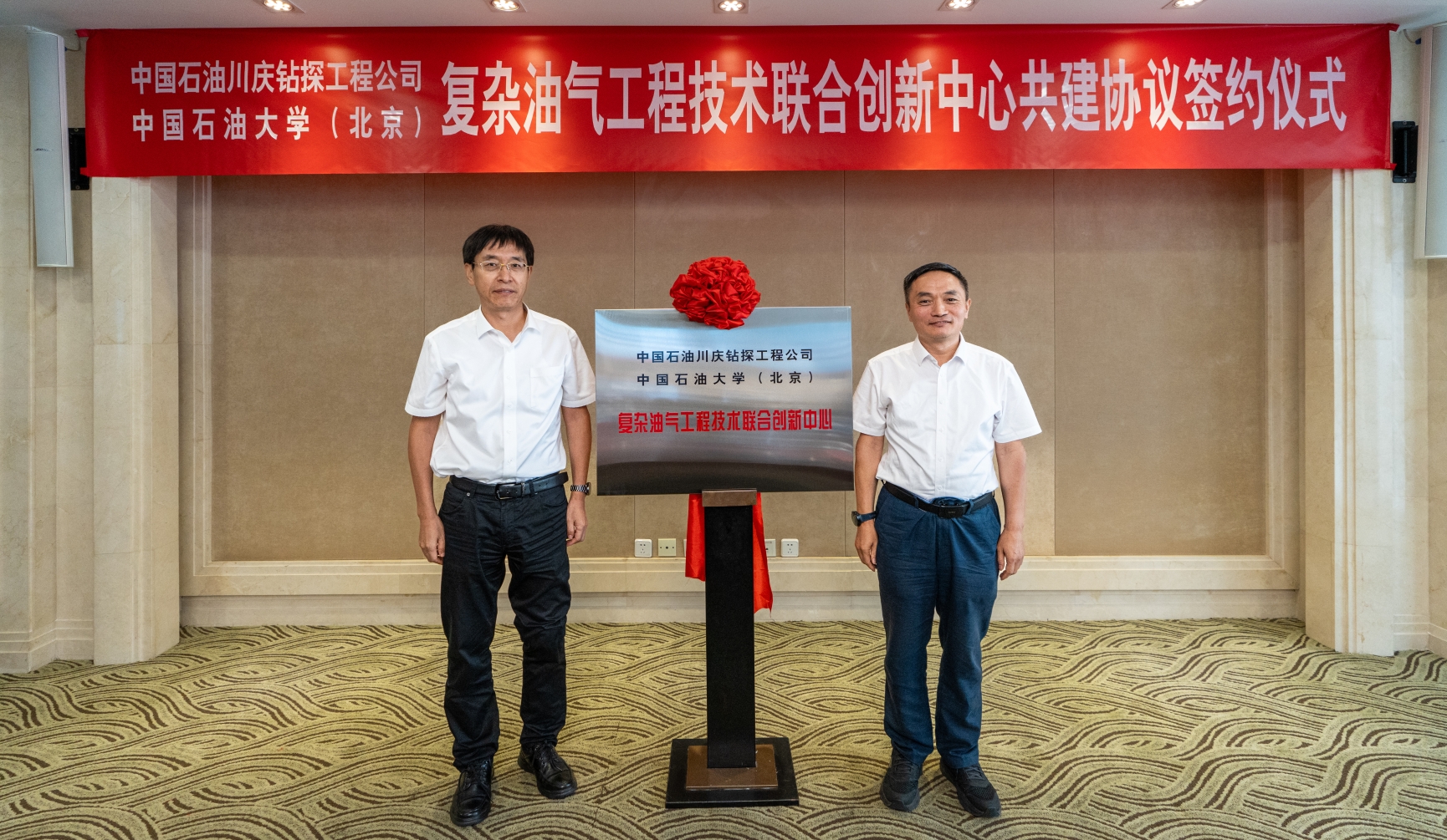 张广清、孙虎分别代表校企双方签署了《中国石油川庆钻探工程有限公司-中国石油大学(北京)复杂油气工程技术联合创新中心共建协议》并为联合创新中心揭牌。