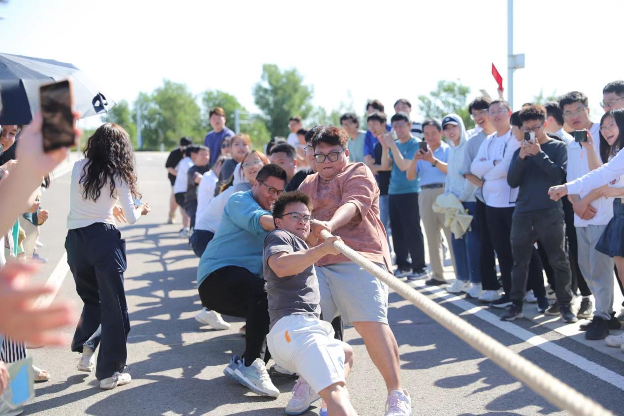 市文化馆演员及在校生为毕业生们送上了《麦西来甫》民族舞表演及《上春山》合唱。拉网捕鱼前,毕业生以学院为单位开展了拔河比赛。红山湖畔,师生们载歌载舞,现场气氛热烈,每一位毕业生脸上都洋溢着对未来的无限憧憬。