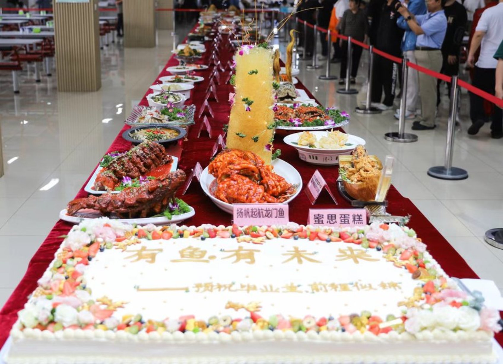 中午13时,75道精心烹饪的“全鱼宴”花式呈现在师生面前。活动中,中国科学院王铁冠院士来到现场为毕业生送上祝福。王铁冠院士表示,“看到大家青春的模样,仿佛自己也回到了当年毕业的时光。”他鼓励毕业生们要始终心怀“国之大者”,在能源强国建设中挺膺担当。聆听着院士的寄语、品尝着鲜美的鱼宴。毕业生们纷纷表示,瑰丽的克拉玛依,温暖的中石大!一湖好水,一尾好鱼,一场盛景,一桌美肴,这是克拉玛依和母校留给大家的难忘回忆,希望带着这份祝福和期待,到祖国最需要的地方放飞青春梦想。