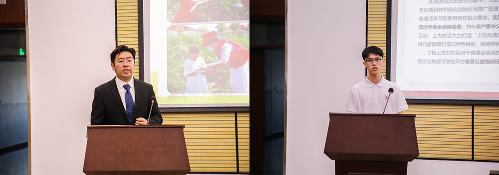 出征仪式上,石油学院于飞鸿代表2023年暑期社会实践优秀个人,以“‘奎’花向阳开,‘油’我伴你行”实践团队为例向大家讲述了如何做好“三下乡”暑期社会实践活动。工学院罗文轩代表2023年暑期社会实践优秀团队,以“青春油缘”实践团队为例,从实践内容、实践成果、总结与感悟等方面进行了经验分享,为大家高质量开展社会实践活动提供了思路。