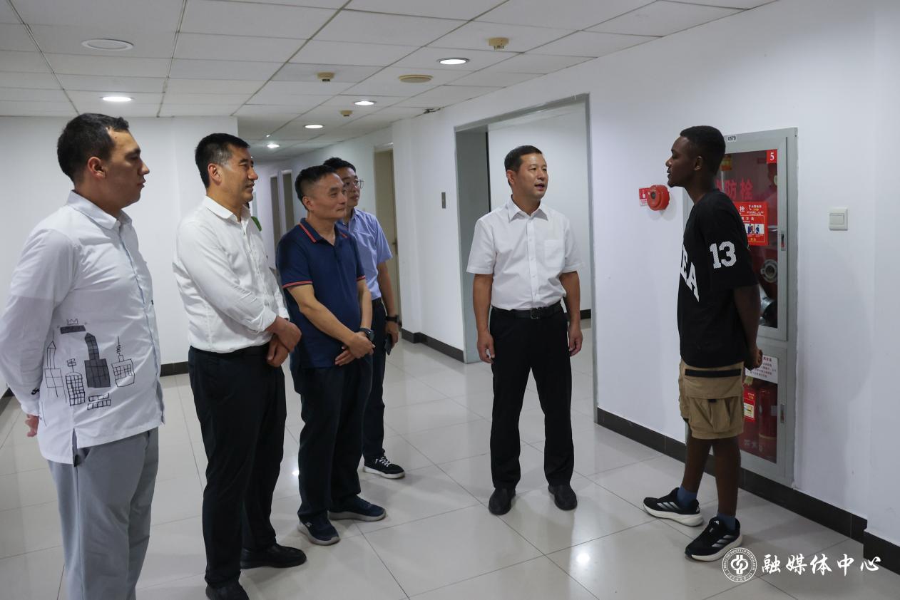 9月5日,学校党委书记王同奇、副校长张广清来到国际交流中心和留学生公寓走访慰问2024级来华留学生新生,视察留学生公寓基础设施及来华留学生生活保障情况,并深入学生房间同新生代表亲切交流,对他们来中石大学习表示欢迎和祝贺,希望来华留学生们尽快适应在华学习生活,学好汉语和专业知识,遵守管理规定,加强沟通交流,结交中外友人,当好友谊使者和合作桥梁。国际教育学院负责人参与走访,汇报介绍2024级来华留学生招生录取和报到情况。