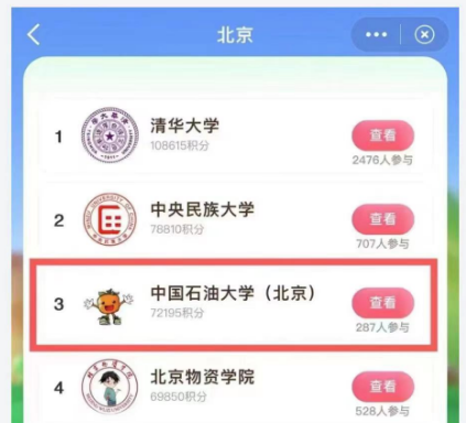 近日,中国石油大学(北京)“做节约粮食践行者”主题活动收官。该活动自2022年11月启动,历时3个月,全校同学通过参与新浪微博“光盘行动”打卡等线上线下方式,在实践中树立绿色发展理念,争做节约标杆。最终,学校以线上打卡累计积分72195的成绩获得北京高校排行榜第三名。