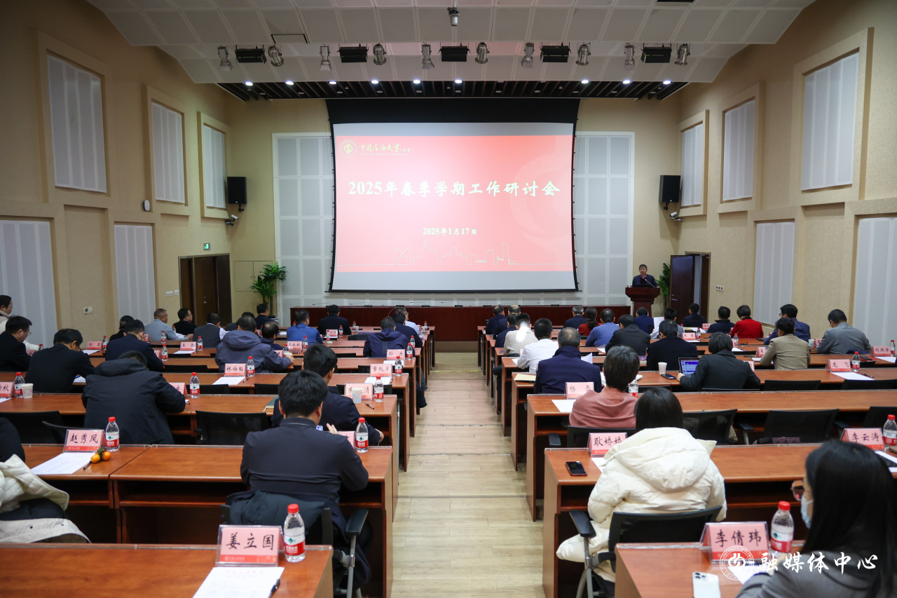 1月17日至18日,中国石油大学召开2025年春季学期工作研讨会,深入贯彻党的二十届三中全会精神和全国教育大会精神,对标教育强国建设战略部署和目标任务,科学谋划学校未来发展主攻方向和改革重点,进一步强优补短促发展,全体校领导、处级干部、一级学科和专业学位类别负责人、克拉玛依校区班子成员参加会议,会议由校长金衍主持。