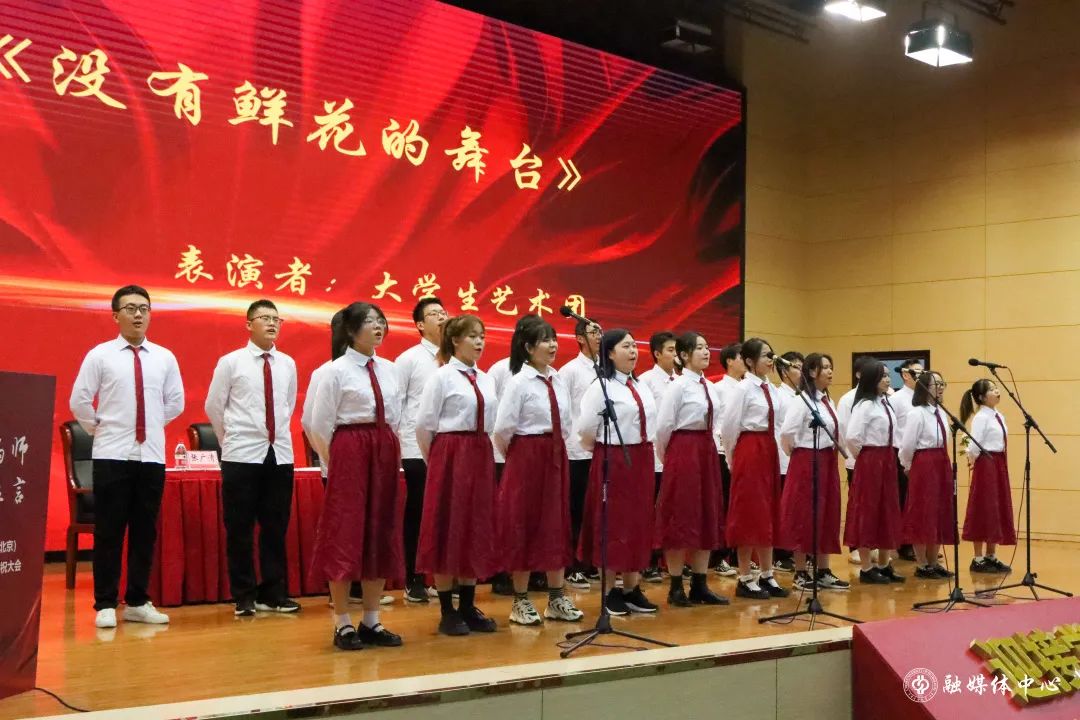 “老师,谢谢您,像一束光照亮我们奔赴远方的路”,大会以《照进生命里的光》短视频拉开序幕。“一支粉笔写春秋,三尺讲台守初心,四季耕耘育桃李,八方学子成栋梁……”在特别致敬环节,学生们用温情感人的合唱《没有鲜花的舞台》和《像您这样的人,没有人不把您赞扬》诗朗诵感念师恩,祝福老师们节日快乐。