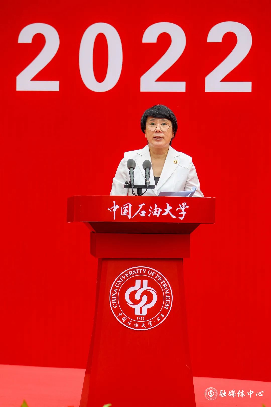 同学们,今天你们作为最年轻的校友,即将踏上人生新征途,学校会永远记得你们在中石大为青春奋斗、为梦想奔跑的样子,也无比期待你们将来能够在各自赛道上跑出“最好成绩”。母校永远是你们的坚强后盾,会一直在身后为你们加油打气。