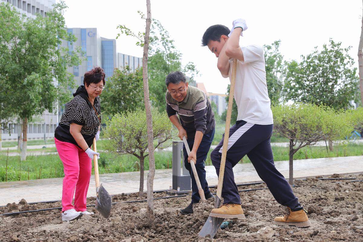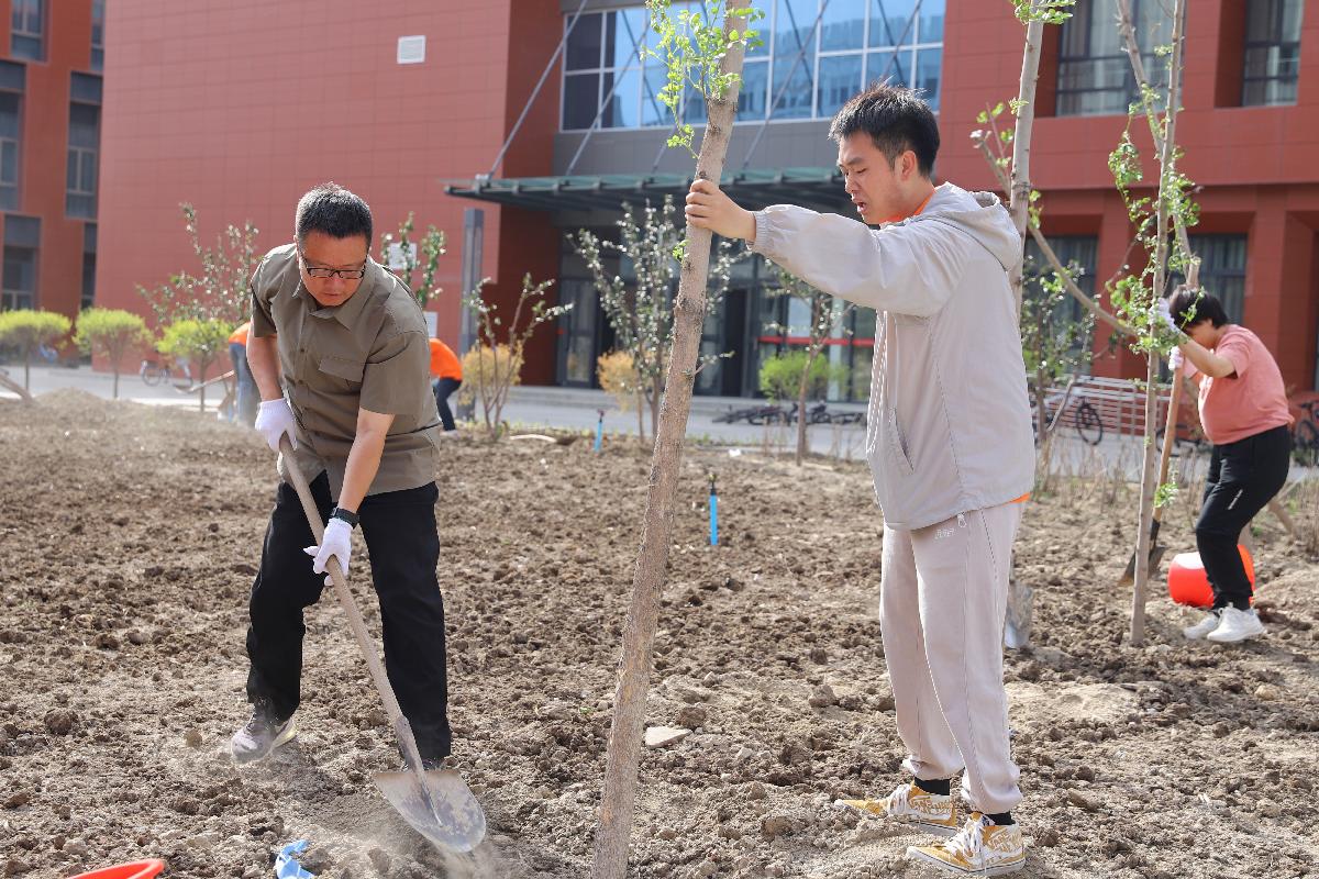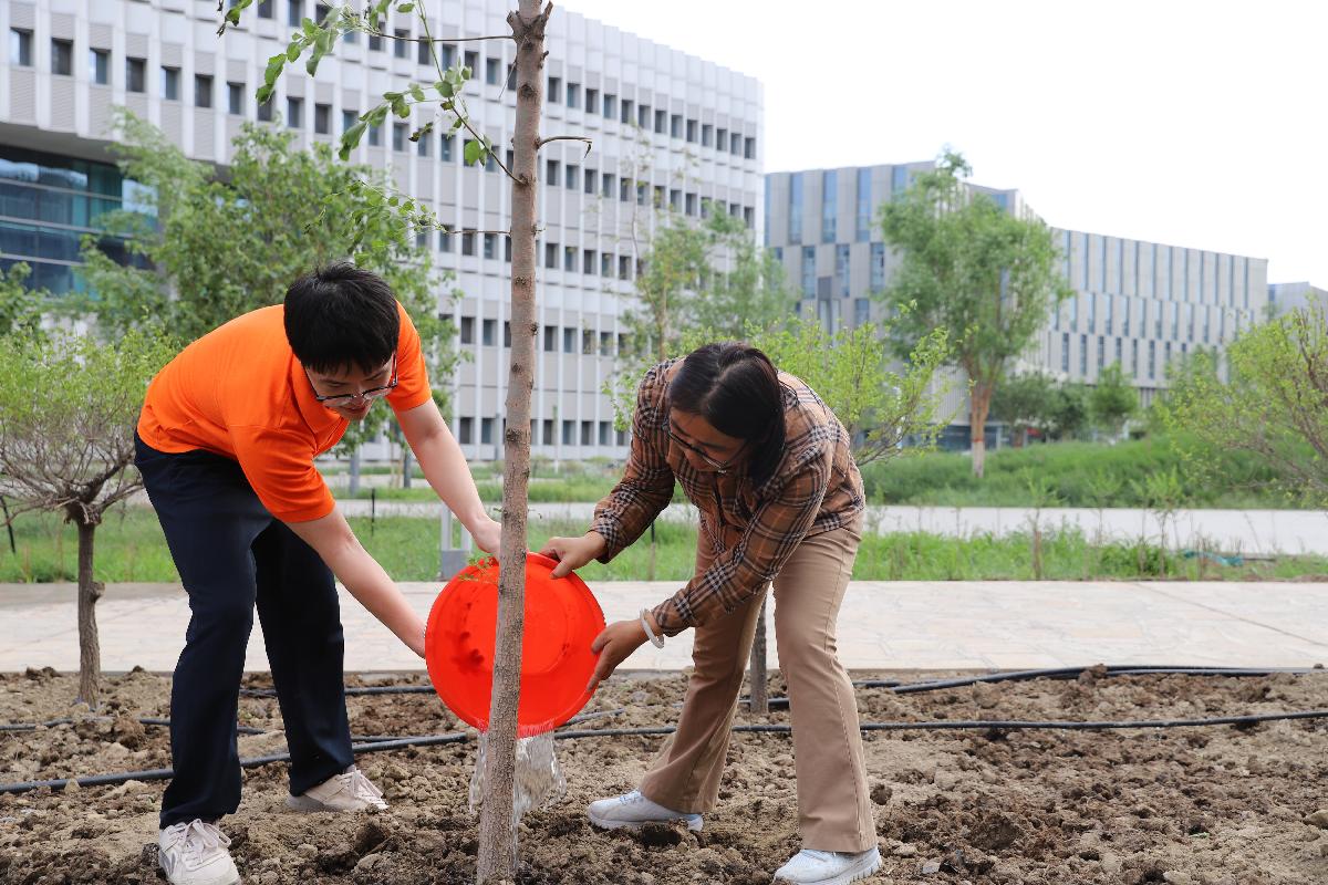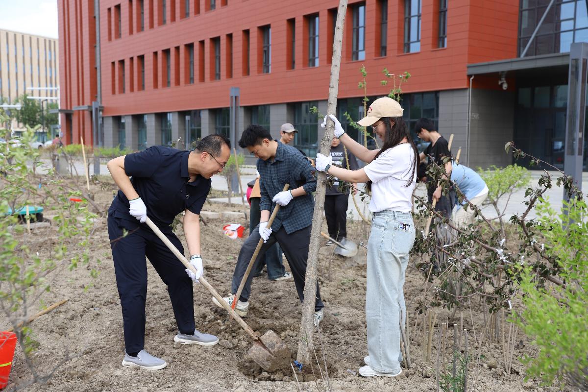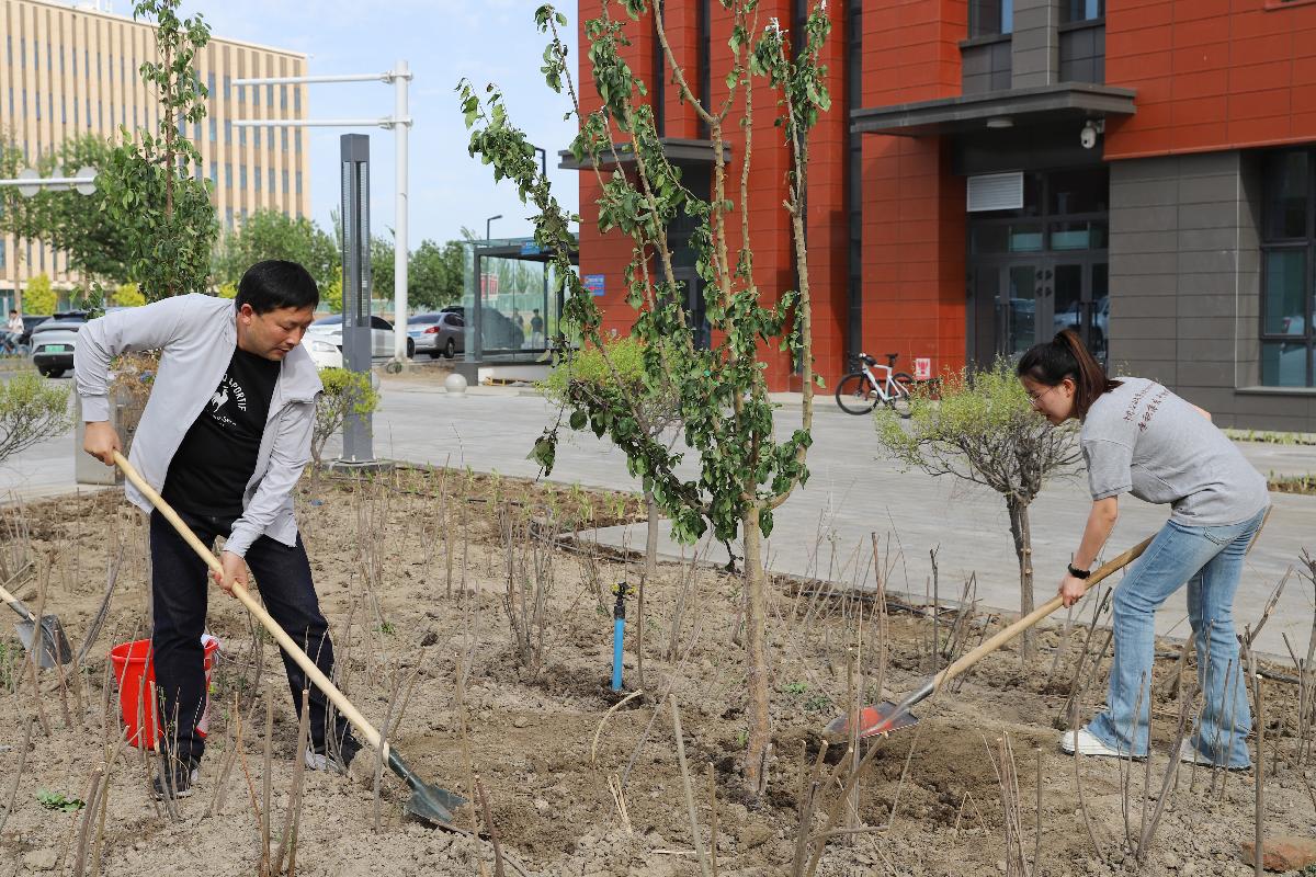 活动伊始,在工作人员的精心引导下,师生们两两结对,彼此默契配合。有的负责稳稳扶住树苗,有的则专注地培土夯实;有的提起水桶,有的则小心翼翼地浇灌着每一棵树苗。整个现场秩序井然,洋溢着和谐融洽的氛围。130余棵小树苗稳稳扎根在土地上,为校园增添了一抹生机勃勃的新绿。