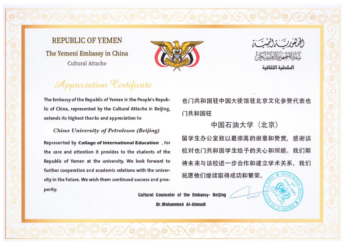 12月16日,也门驻华使馆文化参赞Dr. Mohammed Al-Ahmadi一行访问中国石油大学(北京),交流了解学校来华留学教育相关情况。国际教育学院相关负责人参加交流会。