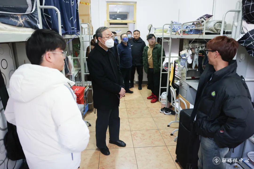“春节过得怎么样?”“工作找得怎么样?”“宿舍感觉冷不冷?”陈峰、文永红一行先后前往润杰公寓1号楼、5号楼看望刚刚返校的同学,了解学生返校情况,并与同学们进行了亲切交流,询问学习和生活中遇到的困难,叮嘱他们做好新学期的规划,珍惜宝贵的校园时光,全身心投入到新学期的学习和生活,取得新的进步、收获新的成绩。陈峰还关心了学生就业、教学安排、宿舍供暖等问题,要求相关部门扎实做好春季开学工作。