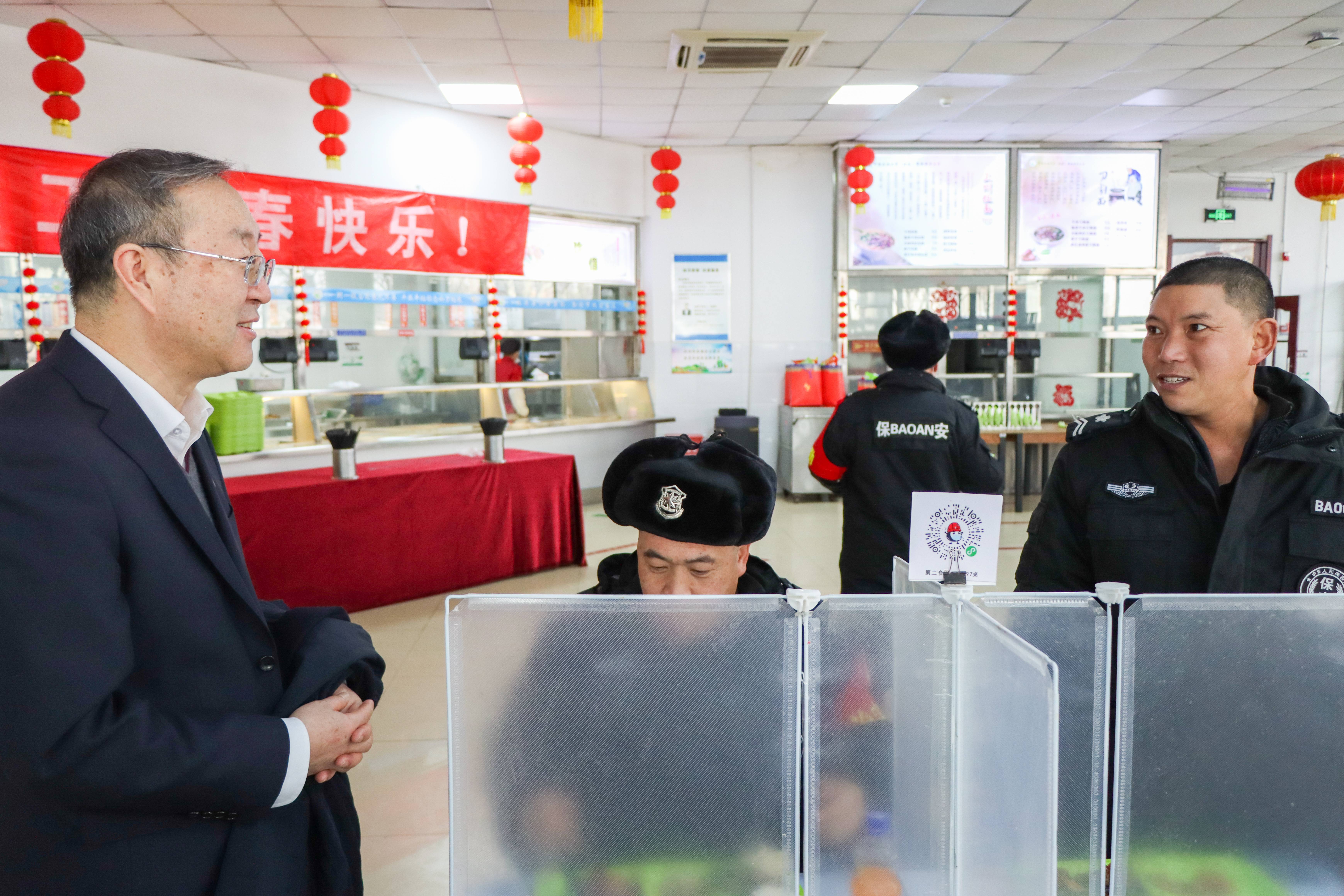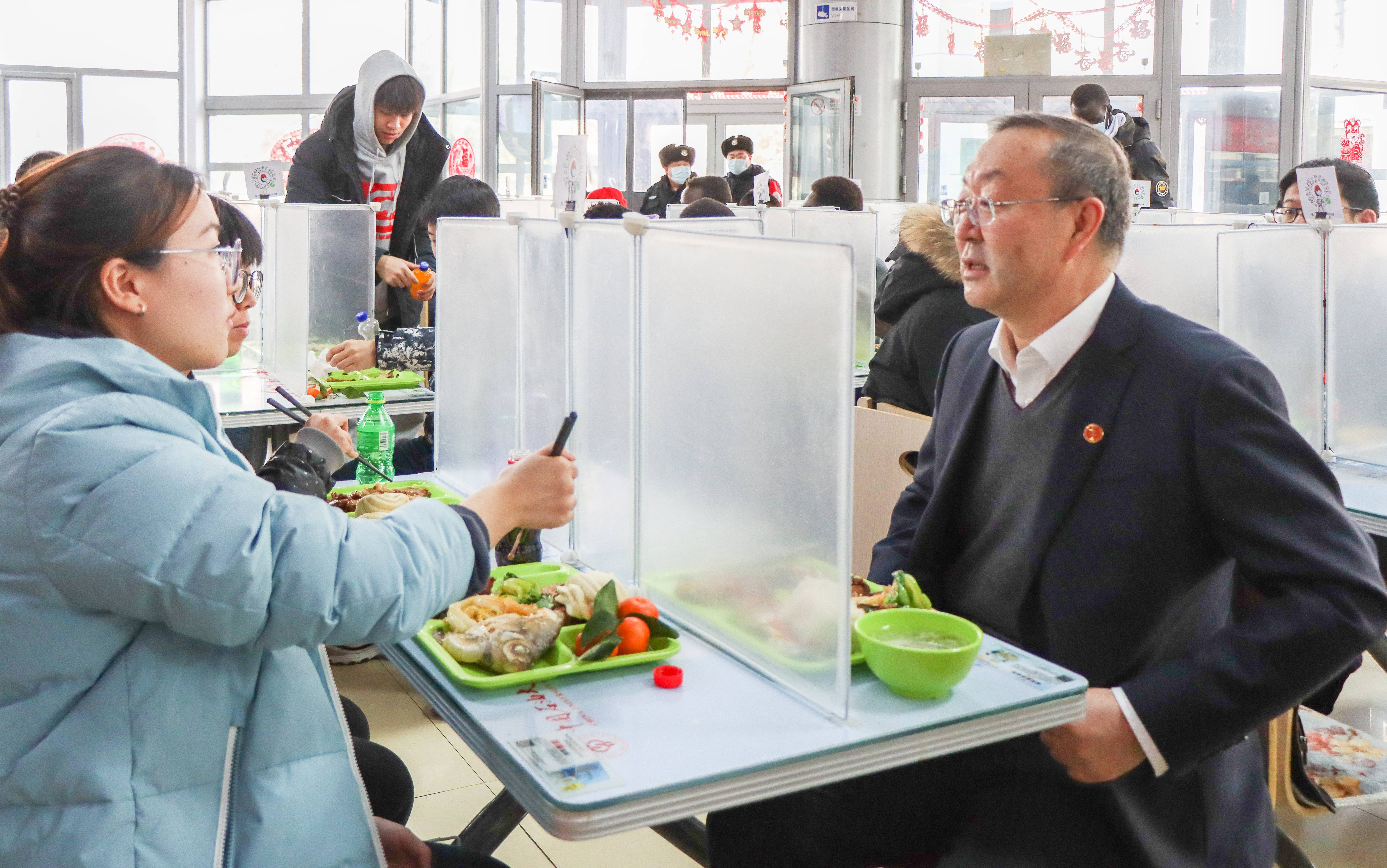临近中午,陈峰、吴小林来到第二食堂,向工作人员表示慰问,给留校师生员工拜年。
