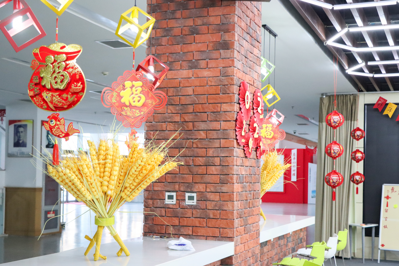 1月31日是除夕,校园里随处可见的灯笼、彩花、对联,透露出浓郁的年味儿。昨夜的微雪后,空气心旷神怡,校园一片欢乐祥和。