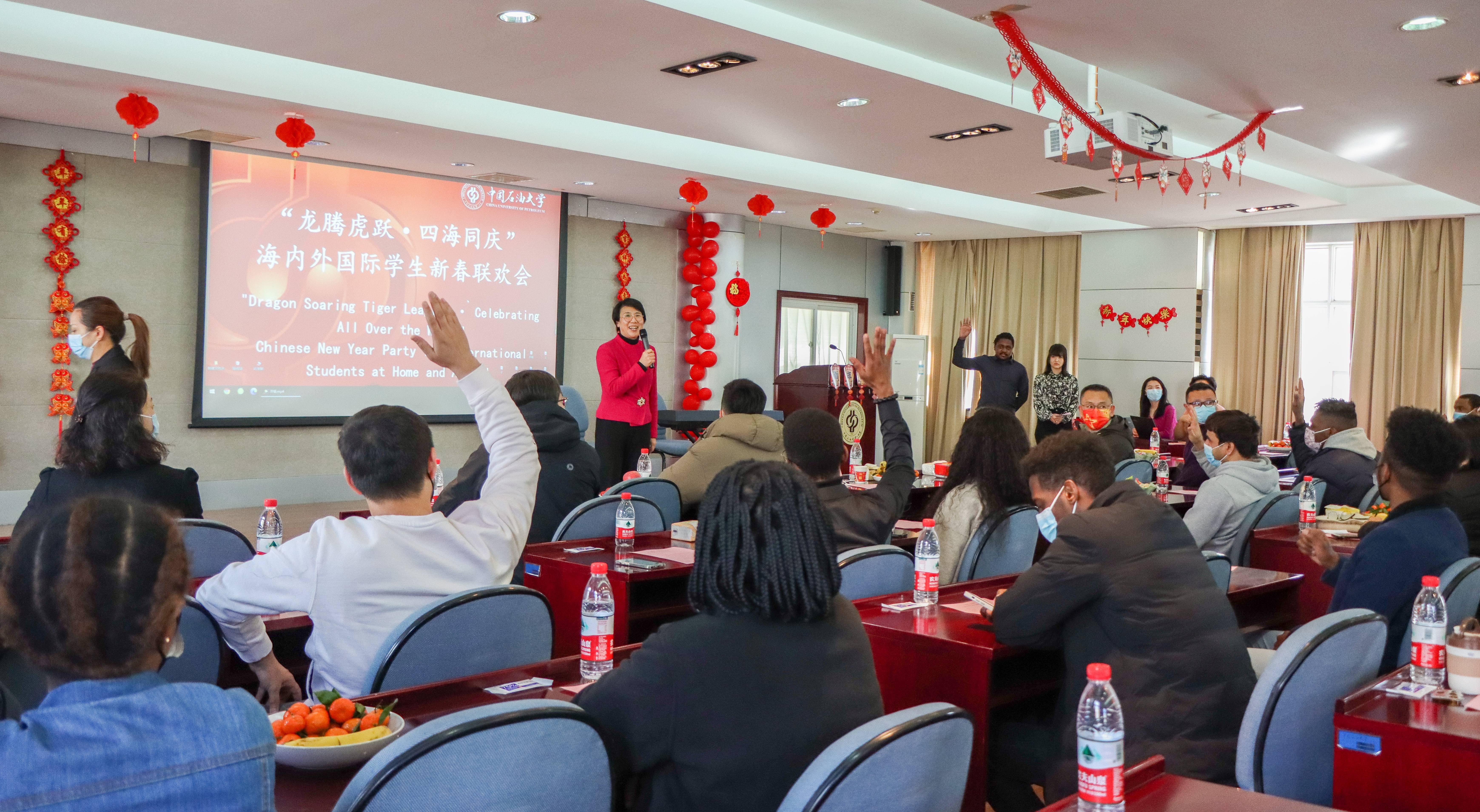 今年,学校有来自俄罗斯、土库曼斯坦、苏丹、厄瓜多尔等43个国家的144名国际留学生在校过年。为引导国际学生深入感受中国春节文化,体会地道中国年味,学校专门组织开展了“龙腾虎跃·四海同庆”海内外国际学生新春联欢会、中外美食文化交流坊等活动。吴小林观看了留学生们表演的钢琴曲、歌曲及相声等节目后,忍不住地鼓掌称赞。她表示,过去一年,学校在科研创新、人才培养、学科建设等各方面取得了不凡的成绩,并为国际学生培养出台了系列政策,希望全体留学生们能够多与家人、朋友分享在中石大的学习成长故事,在虎年有更多的期待、更大的进步,为国际交流尤其是“一带一路”建设贡献自己的力量。