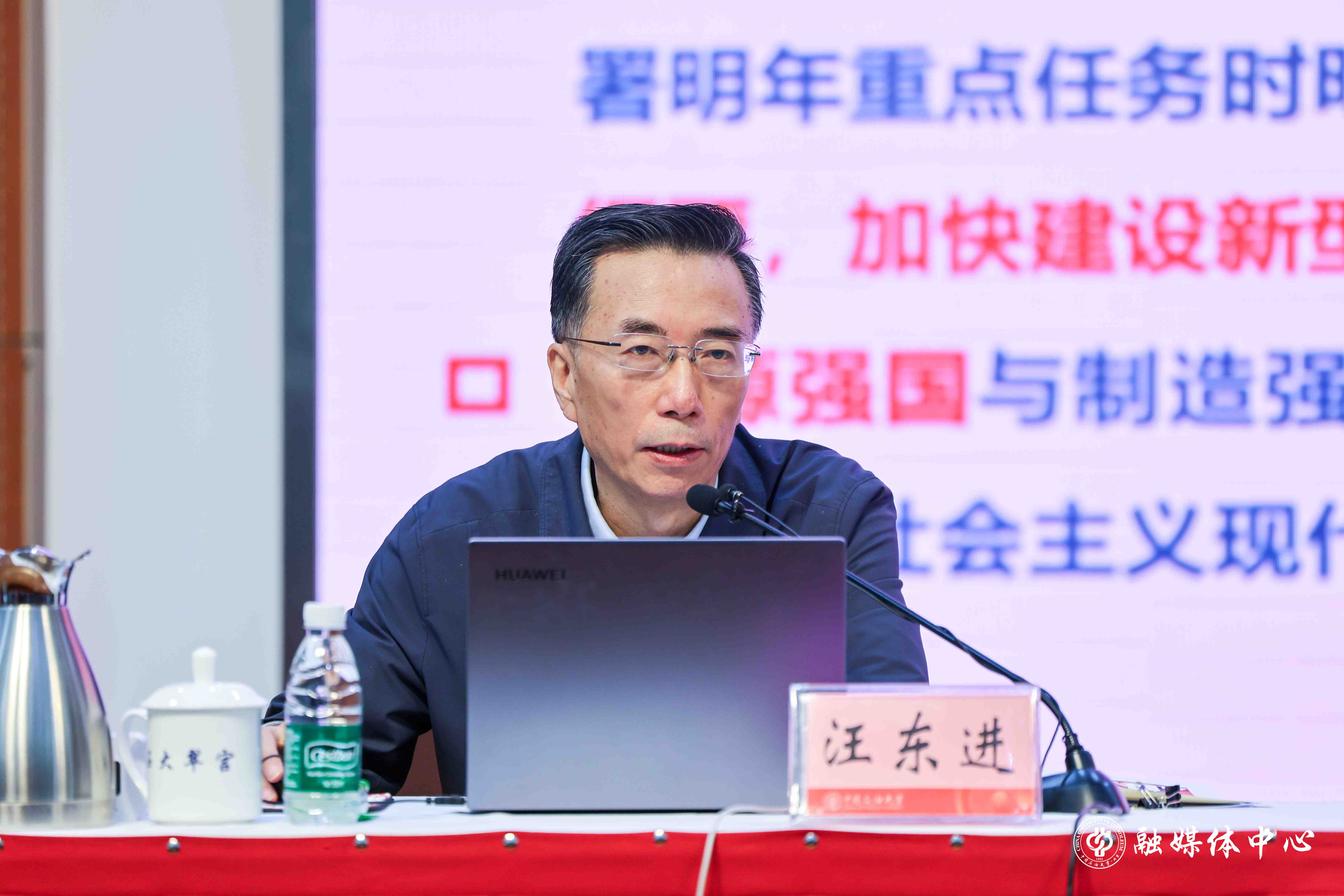 为深入学习贯彻党的二十届四中全会精神,把握能源行业发展现状与趋势,进一步明确学校在能源领域的特色定位,增强服务能源强国建设的使命感,2025年12月30日,中石大组织召开党委中心组理论学习扩大会,邀请中国海油集团原董事长、党组书记汪东进作题为“中国‘十五五’能源发展展望”的辅导报告。学校党委理论学习中心组成员、全体处级干部及学院系主任、学科负责人等教师代表参会。学校党委书记王同奇主持学习。