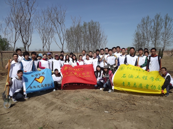 4月11日,中国石油大学40余名志愿者参加由北京团市委主办的青年先锋造林行动。校青年志愿者协会携手石油工程学院青协、机械与储运工程学院青协、地球物理与信息工程学院青协和油气储运工程专业09级2班共同参与此次志愿服务活动。
