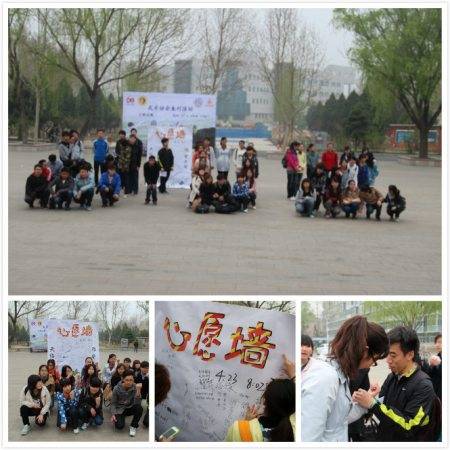 4月23日上午,外国语学院英语12级2班的同学自发在校园内摆出爱心祈福板,深深地缅怀在雅安地震中遇难的同胞,为四川雅安同胞祈福。路过同学纷纷在祈福板上留言,表达自己对灾区的祝福。