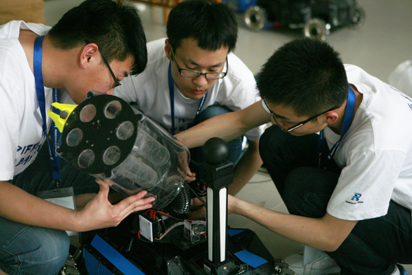 530日至31日,RoboMasters2015全国大学生机器人大赛(华北赛区)将在中国石油大学(北京)体育馆举行。来自清华大学、北京大学、天津大学、北京科技大学、华北电力大学、中国石油大学(北京)、中国石油大学(华东)等华北地区20多所高校的24支队伍已齐聚石大,厉兵秣马,正为角逐华北赛区冠军及全国总决赛参赛名额做最后的精心准备。