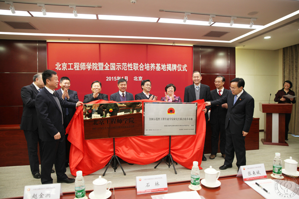 北京工程师学院由中国石油大学(北京)与中国石油、中国石化、中国海油等石油石化企业的四家在京研究院于2013年8月共同建立。2014年,北京工程师学院获得第一届“全国示范性工程专业学位研究生联合培养基地”荣誉称号(全国仅28家培养单位)。此次揭牌仪式的成功举行将掀起北京工程师学院发展的新篇章,进一步推进学校与四家研究院之间更加全面、广泛、深入的合作,进一步促进学校专业学位研究生培养模式的改革和培养质量的提升。