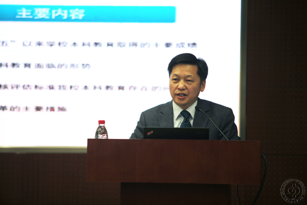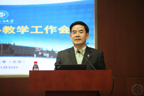 中国石油大学(北京)副校长张士诚作了“以审核评估为契机,全面深化教学改革,开拓本科教育发展新局面”的报告,梳理了“十二五”以来学校本科教育工作取得的成绩,分析了当前本科教育面临的形势,对照教育部审核评估标准查找了本科教育工作存在的问题与不足,明确了本科教育工作下一步的发展方向和主要任务,提出要以审核评估为契机,继续巩固本科教育的基础地位,进一步明确本科人才培养目标,深化教育教学改革,实现本科教育教学质量的再提升。