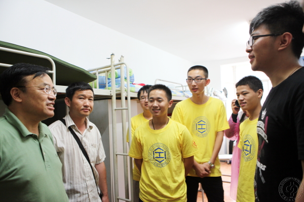 当天上午,党委书记蒋庆哲、校长张来斌分别在相关部门负责人的陪同下,来到润杰公寓,看望本科新生,检查迎新工作。他们逐一查看了各学院、各社团的迎新接待点,详细询问迎新工作的进展;深入学生宿舍,与新生及其家长进行亲切交谈,了解他们的家庭情况和报到手续的办理情况。来自广东湛江的黄灏,家长在中海油工作,他对蒋庆哲吐露心声:“来中国石油大学是第一选择。”外国语学院一个来自广西的同学,一家三代都来了,蒋庆哲在表示祝贺的同时,也让他们放心:“学校对每个学生都会认真负责。”对在场的工作人员,蒋庆哲也表示感谢,并加以鼓励。石油工程学院的龚珂长得人高马大,张来斌风趣地说:“这么大的个子,应该加入学校运动队。”机械与储运学院的新生毕成多才多艺,钢琴、书法、游泳样样精通,以前就是学生会的骨干,一来报到就迫不及待地要加入学生会,张来斌也勉励他继续努力,全面成长。
