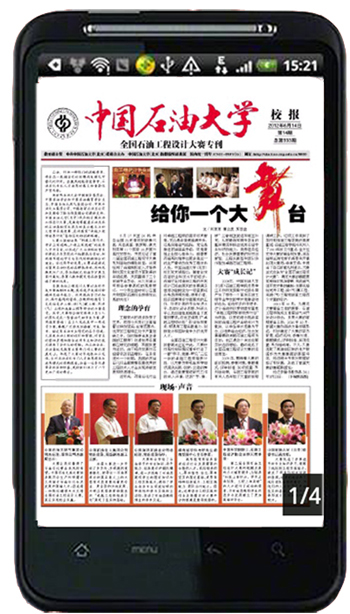 在实现网络读报之后,《中国石油大学校报》再添新的阅读终端。通过下载手机阅读高校校报软件“华文读报”,读者即可利用手机随时随地、原汁原味地同步浏览最新的校报,了解石大新闻,感受石大文化。