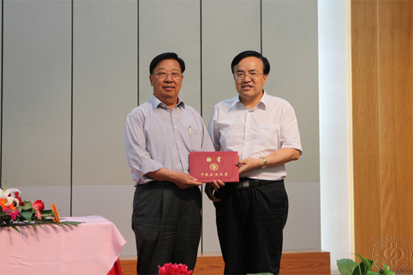 6月7日下午,原北京市检察院检察长、校友许海峰莅临中国石油大学做专题报告,并受聘为兼职教授。专题报告会暨兼职教授聘任仪式在翠宫报告厅举行。校长张来斌代表学校为许海峰颁发兼职教授聘书。党委副书记雷玉江主持会议。学校宣传部、学工部负责人,全体学生工作干部及毕业班学生代表参加了报告会。
