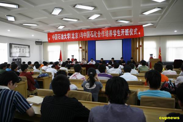 5月21日下午,中国石油大学(北京)与中国石油化工股份有限公司联合培养学生开班仪式在学校办公楼第四会议室举行。副校长徐春明,中国石化人事部培训开发处、中国石化国际勘探开发公司计划处、中国石化国际石油工程公司人事处等合作方的负责人,我校教务处、研究生院、学工处、就业指导中心等职能部门负责人,以及合作培养录取的50余名同学参加了开班典礼。
