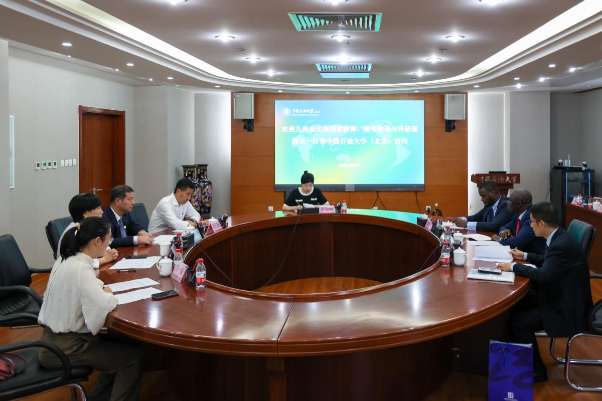 9月7日,在京参加2024中非合作论坛峰会的几内亚比绍国家教育、高等教育与科研部部长Herry  Mané一行访问中石大,中外语言交流合作中心美大处副处长盛维国陪同。党委书记王同奇会见了代表团,国际合作与交流处、国际教育学院、网络与继续教育学院相关负责人参加会见。