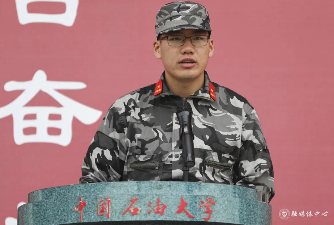 参训学生代表、理学院姜泽坤发言,表示将遵守纪律、迎难而上、团结协作,努力学习国防知识,增强国防意识,继承和发扬中石大精神。