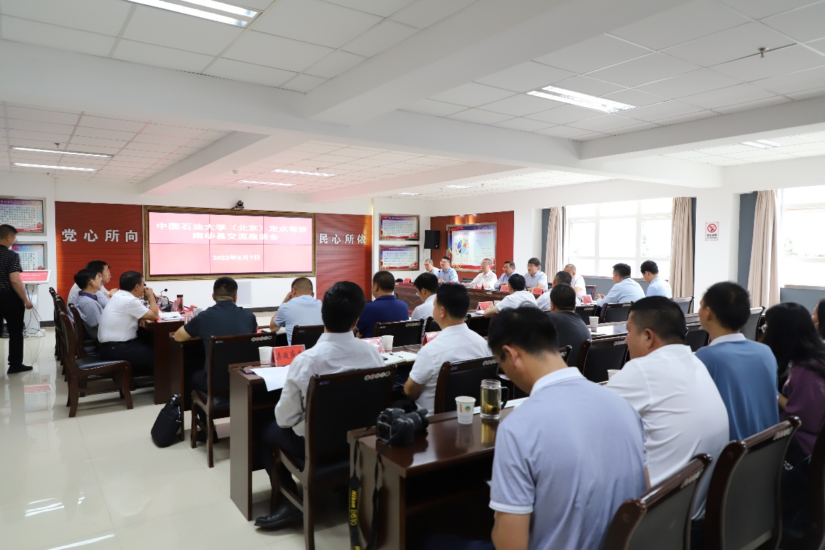 8月7日,中国石油大学(北京)帮扶交流座谈会在南华县召开。州委常委、副州长张建军,南华县委书记马特,县委副书记、县长陈如军以及县委县政府相关负责同志参加会议。马特介绍了南华县巩固脱贫攻坚成果及推进乡村振兴发展情况,并对学校在各方面工作给予的帮助表示感谢。张建军表示,中石大的各项帮扶举措有实效、可持续,助力了楚雄南华县经济社会发展和人民群众增收,更加坚定了南华人民创造美好生活的信心与决心。
