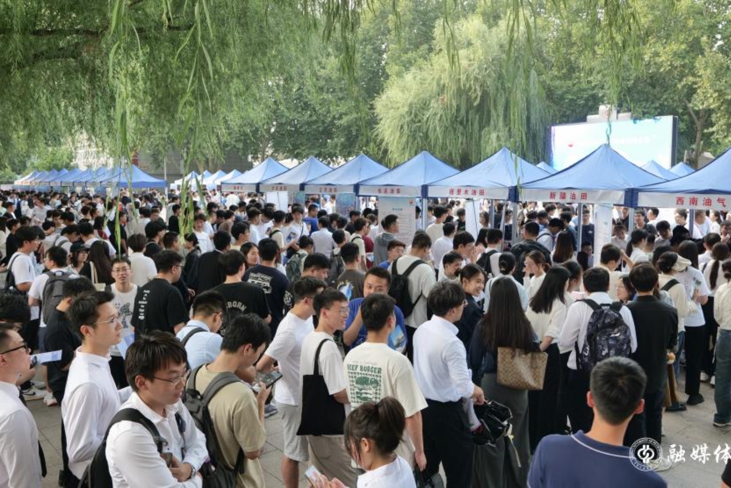 宣讲会后,中国石油各下属企业代表在北校园南广场开展了现场招聘咨询。3000余名毕业生与企业代表进行了详细沟通洽谈,现场投递简历10000余份。