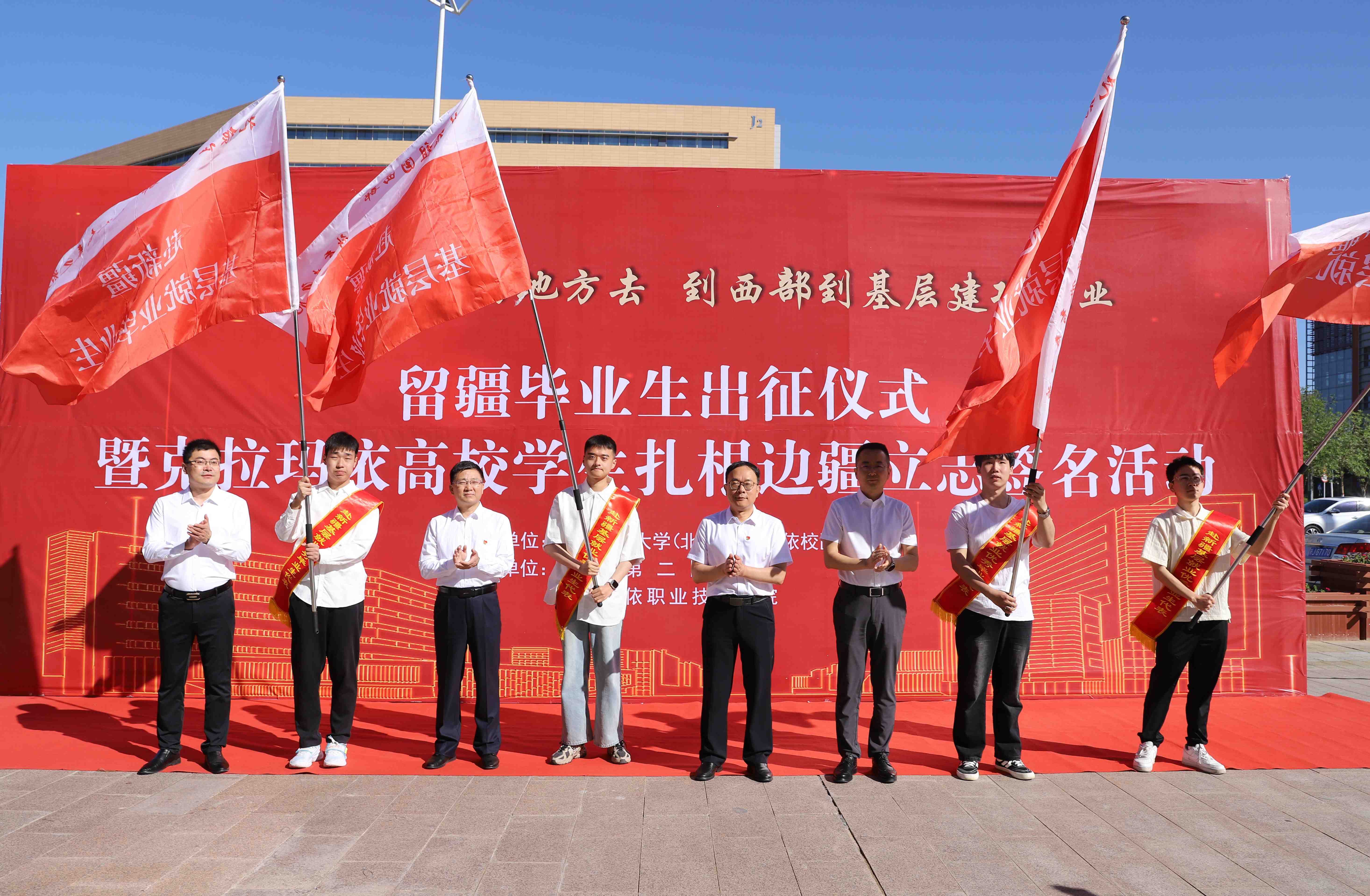 本次出征仪式共有克拉玛依三所高校2024届留疆就业毕业生及在校生代表200余人参与,旨在通过宣传树立典型,激励三校青年学子树立“志不求易者成,事不避难者进”的理想信念,到西部基层去建功立业,让青春之花绽放在祖国最需要的地方。