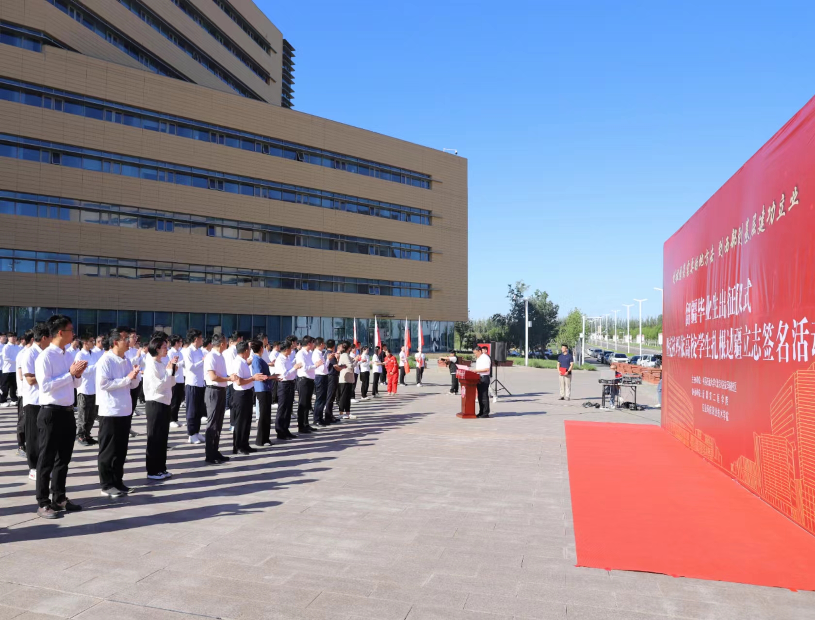 中石大校区举办“到祖国最需要的地方去”留疆毕业生出征仪式暨克拉玛依高校学生扎根边疆立志签名活动