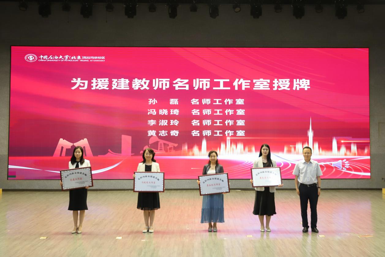 启动仪式上,教育部教师司二级巡视员陈武为校区2023-2024学年“最美援建教师”颁奖。克拉玛依市教育局党组副书记、局长张应勋为克拉玛依市援建教师名师工作室主持人授牌。校区党委副书记徐长亮为援建教师代表颁发校友纪念牌。校区副校长、总会计师张红艳为“援建教师文艺作品展”创作者颁发收藏证书。